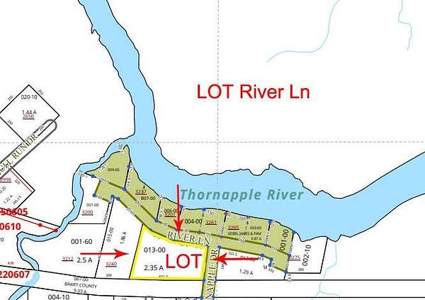 Est $569/moPRIME 2.2 acre lot with a large 1,200 sq ft pole barn for storage, workshop, or extra space for hobbies and toys. The house across the street on the Thornapple River is also listed both as stand alone and also listed as package with this lot. Both listed as 3261 River Ln.