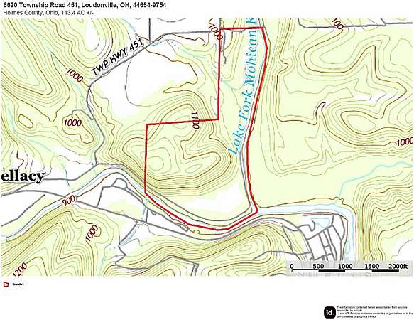 Two Rivers Farm, conveniently located less than four miles from Loudonville, just minutes from Mohican State Park and sixteen miles from Millersburg, presents a fantastic opportunity to own a unique recreational property in Ohio and fully enjoy the great outdoors. Situated at the confluence of the Mohican State Scenic River and the Lake Fork of the Mohican River, this property is truly special. Camp, hunt, fish or build your dream getaway on this stunning piece of Holmes County land for sale! This 113.4 +/- acre farm serves as the place to experience forested hills, oak ridges, and life along the river. With nearly half a mile of river frontage on the Mohican River and over 3,400 feet on Lake Fork River, you will find a relaxing place to canoe, fish, or simply unwind in nature. Enjoy catching smallmouth bass, northern pike, and various other species right from your own land. Easy access throughout the farm through gravel farm lanes leading to multiple secluded areas, including hay fields, mature woods, and the water. The land features over 24 acres of scattered grass/clover fields, bottomland woods, oak ridges, and hemlock trees. Beautiful white oak trees dot the forested hills, while impressive sycamore, walnut, and cottonwood trees can be found in the river bottoms. Additionally, the landscape includes numerous wild cherry, red oak, hickory, and scattered white pine. On-site, you'll find a 34 x 50 bank barn crafted from hand-hewn timbers and a 1,500 square foot pole building that has been converted into potential living space and storage. Electric service is available from two sides of the farm, with outlets located at the confluence of the two rivers, making it easy to power campers and RVs. If you're considering building new, there are multiple secluded building sites scattered throughout the property. This land has been home to plenty of wild turkey and giant whitetail bucks, including a remarkable 200-inch buck, along with other high-scoring deer. Nature enthusiasts will delight in spotting bald eagles soaring overhead and numerous migrating birds utilizing the river corridors. Property taxes are approximately $1,300/year. No zoning restrictions. This unique gated property is subject to private showings only-call today for more information! --