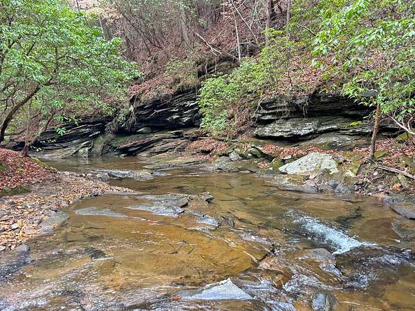Proudly presenting Talking Rocks newest, large, super private, CREEKFRONT property which has never been on the market before. This 5.26-acre tract is tucked away in the middle of an 80-acre parcel completely surrounded by forest and nature. With a nice cleared flat area up top for parking or a home site, and gently sloped terrain, that leads down to over 200 feet on Price Creek. Which is an approximately 40-foot-wide creek with large rock formations, moss covered boulders, mountain laurel galore, and plenty of river rock beaches for easy access into the creek. There's a natural spring head, and several other springs, as well as additional streams flowing through the property. It may be possible to build a natural spring fed pond and stock it with fish. An old logging road meanders its way through and around the property providing access to multiple build locations. Build an estate for yourself, or setup multiple structures for a family compound, or cluster of rental properties. Buy now, build later, as there are no restrictions as to when you build. Bring your camper, your hammock, some tents, camp out until you're ready to build. This property is located just outside of two high end subdivisions: The Vineyards at Yukon and Bravo Rivera Estates. So you can enjoy the same great location and high-end features but without an HOA telling you what you can and cannot do with your property. Chateau Meichtry Family Vineyard and Winery and Canoe Vineyard and Winery are just minutes away, and downtown Ellijay and Jasper are only 10 miles away, and downtown Talking Rock is only 8 miles away. Where there's plenty of restaurants, breweries, rooftop bars, boutique shops, coffee houses and more. This property has been surveyed and soil tested for when you are ready to build. Bring your builder or we'd be happy to introduce you to a few of ours. Call us today. We look forward to hearing from you soon! Property is gated and locked. VIEWING BY APT ONLY.