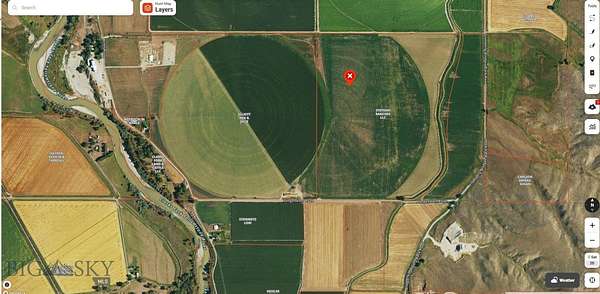If you're looking for productive irrigated land in a beautiful rural Montana community, please consider these 260 acres. Irrigated by one seven tower "Valley" full circle pivot and a "T&L" eight tower pivot with a corner arm half circle. Both pivots are gravity fed with a booster pump at the center of each. Both booster pumps are electric. Access to this property is by county road "Lower River Road" depending on the map you're using. Irrigation comes from water out of the Orchard Canal. Both pivots run out of one headgate and can operate at the same time. The views of the Absaroka Beartooth Mountains are expansive and building sites exist to capture the views.
