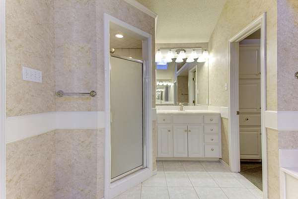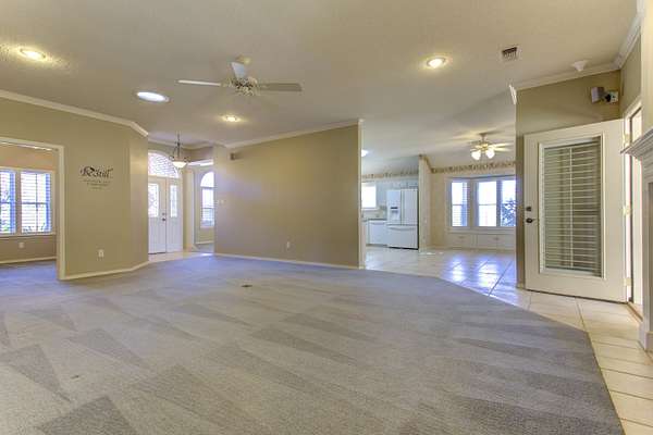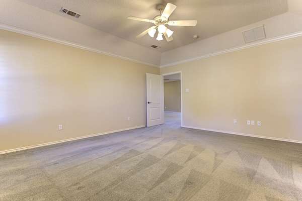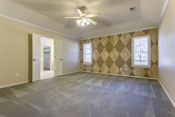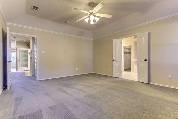 - Built-In Features, Ceiling Fan(s), Crown Molding, Double Vanity, Eat-In Kitchen, High Ceilings, His and Hers Closets, Kitchen Island, Pantry, Soaking Tub, Solar Tube(s), Solid Surface Counters, Walk-In Closet(s)