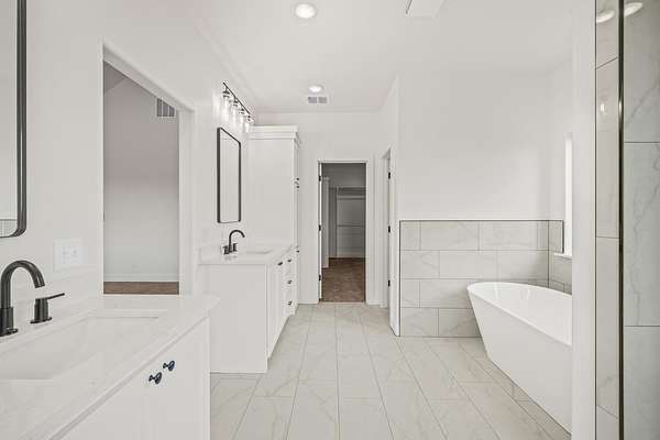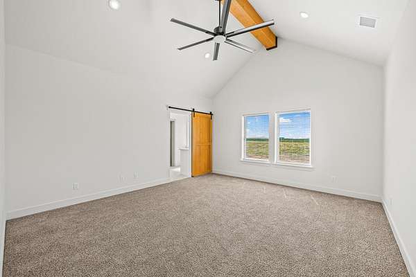 - Beamed Ceilings, Cathedral Ceiling(s), Ceiling Fan(s), Double Vanity, High Ceilings, Kitchen Island, Low Flow Plumbing Fixtures, Open Floorplan, Pantry, Quartz Counters, Recessed Lighting, Soaking Tub, Walk-In Closet(s), Wired For Data