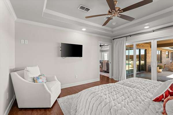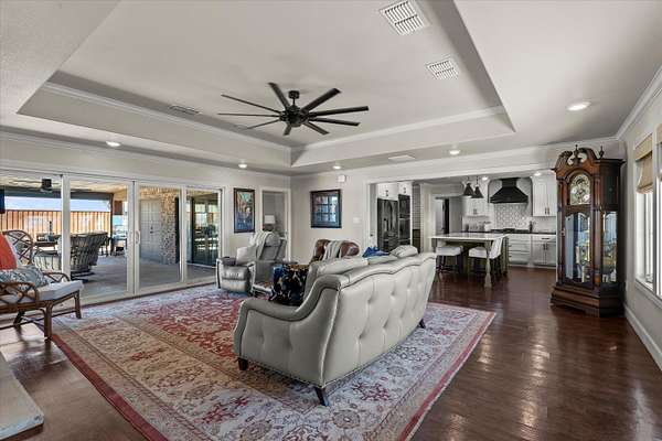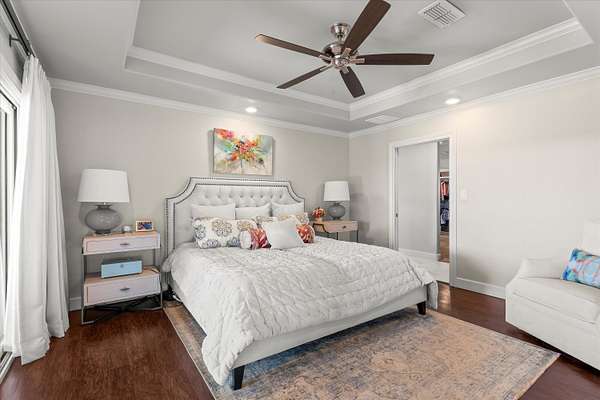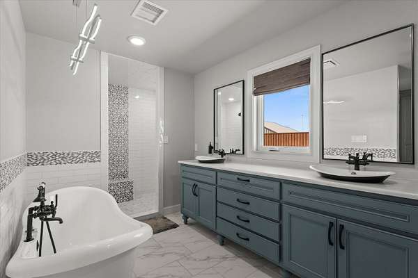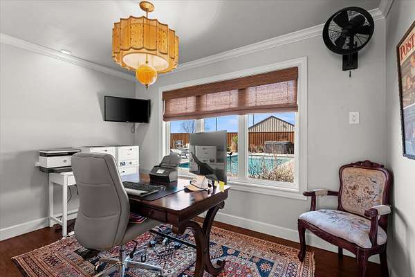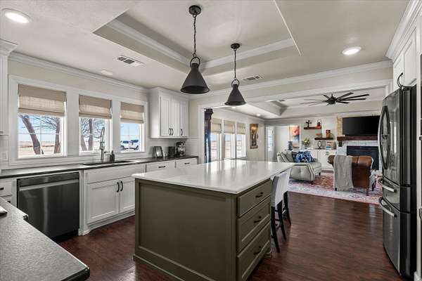 - Breakfast Bar, Ceiling Fan(s), Crown Molding, Entrance Foyer, Granite Counters, Kitchen Island, Open Floorplan, Pantry, Recessed Lighting, Smart Light(s), Soaking Tub, Wet Bar
