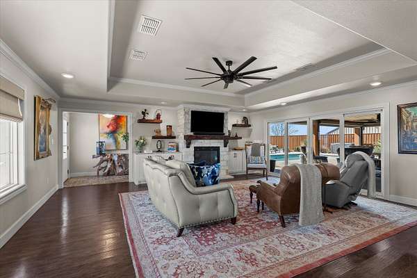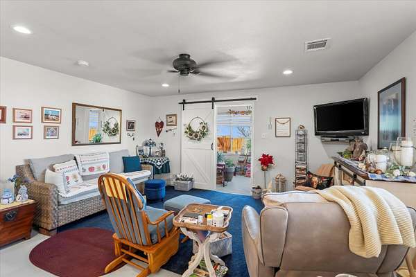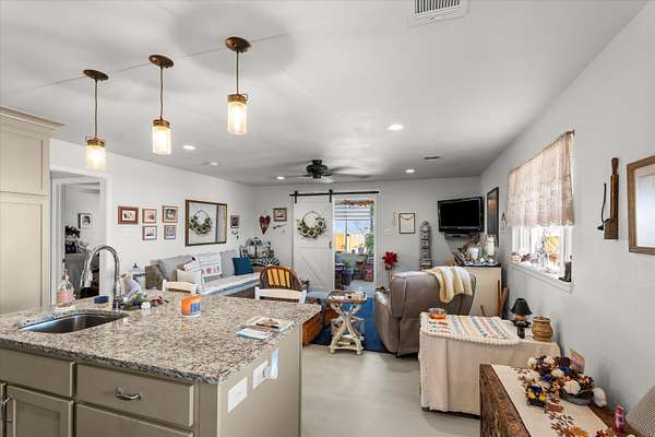 Welcome to your own private retreat in Lubbock, Texas. Situated on 7 acres, this beautifully remodeled 3 bedroom, 3 bathroom home offers space, comfort, and exceptional amenities both inside and out. Remodeled in 2020, the home blends modern updates with warm, inviting finishes. The spacious living room features a stunning stone fireplace, custom built ins and abundant natural light. Electric blinds in the living room and office provide added convenience and comfort. The open concept layout flows seamlessly into the fully updated kitchen, making the space ideal for everyday living and hosting. The primary suite and additional bedrooms offer ample space and privacy, while all three bathrooms have been tastefully updated. Rich vinyl flooring and thoughtful details throughout the home create a cohesive and polished feel. In the garage, there is a storm cellar for added safety. Step outside and enjoy everything this property has to offer. The back patio includes electric porch screens and an in ground pool making it perfect for entertaining during warm West Texas summers, with plenty of room to gather, relax, and enjoy the wide open views. The acreage provides endless possibilities for animals or simply enjoying peaceful country living. In addition to the main home and attached 2 car garage, the property includes a 30 x 70 barn. There is also a separate efficiency dwelling that is heated and cooled, offering 2 bedrooms, 1 bathroom, and approximately 1,091 square feet. This additional living space is perfect for guests, extended family, or rental income potential. If you are looking for a move in ready home with acreage, modern updates, and incredible entertaining space, this Lubbock property delivers the best of country living with convenient access to town.