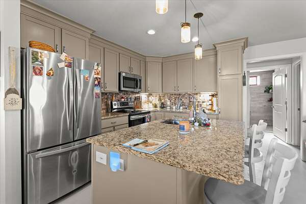 - Bar Fridge, Dishwasher, Disposal, Microwave, Refrigerator, Washer/Dryer, Wine Refrigerator