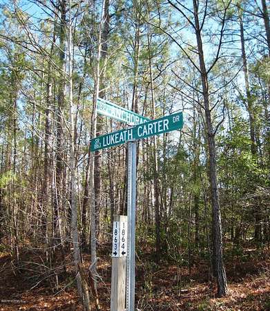 From Havelock/Cherry Pt (or US-70): East on NC-101 for 6.5 miles. Left on Temples Point Rd for 0.7 mile. Right on Godette School Rd for 0.5 mile. Left on Blades Rd for 0.8 mile. Right on Clubfoot Creek Rd (for just a few feet). Then a quick left on Lukeath Carter Dr. Property begins just after bend in road, continues over 1,600 feet path gate to waterfront. From Beaufort: NC101 North to Harlow.
