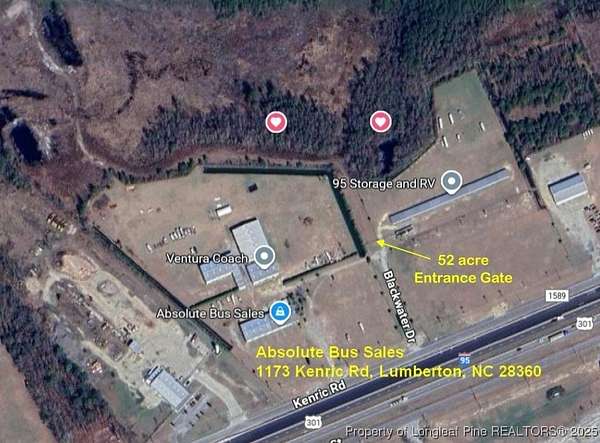 Access road is in-between Absolute Bus (1173 Kenric Rd, Lumberton NC) and 95 Storage and RV. Access Road and Easement is called Blackwater Dr. There is a locked gate on the easement road that will need to be unlocked by the owner.