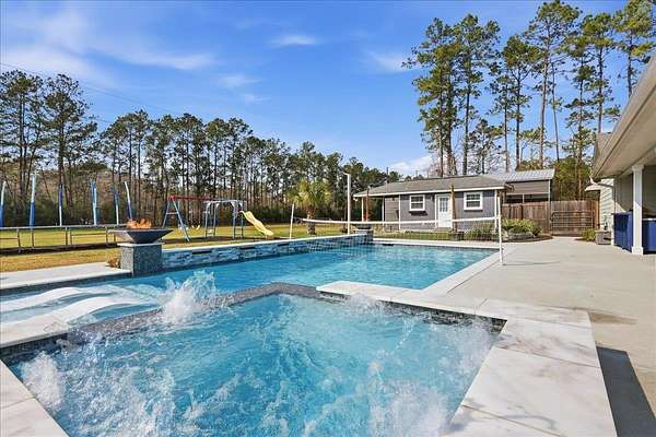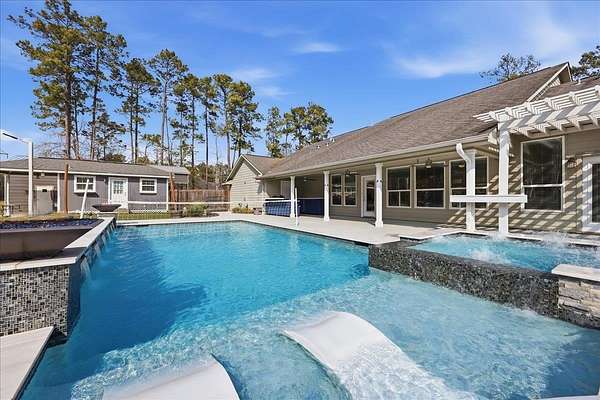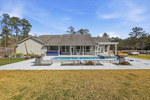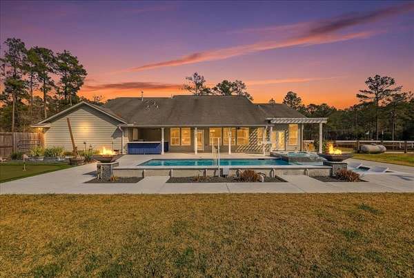 Beautifully updated & perfectly positioned in Lumberton ISD, this exceptional property offers the space, privacy, and amenities you've been dreaming of all on 2.3 acres. From the moment you arrive, the breathtaking curb appeal makes a statement w/ its expansive front porch & oversized circle drive welcoming you home. Inside, the open-concept layout provides seamless flow for everyday living & entertaining. The kitchen features a breakfast bar, island, gas cooktop w/ pot filler, and double ovens. A split-bedroom floor plan ensures privacy, w/ a spacious primary suite offering double sinks, a soaking tub, separate shower, and walk-in closet. A convenient 1/2 bath sits just off the indoor utility. Relax beneath the covered patio overlooking the heated pool complete with six waterfalls & fire features, the pond, or entertain effortlessly w/ the outdoor kitchen. Guests will love the separate guest house. The 20' x 20' workshop includes a 12' roll-up bay door and attached 10' x 40' lean-to.