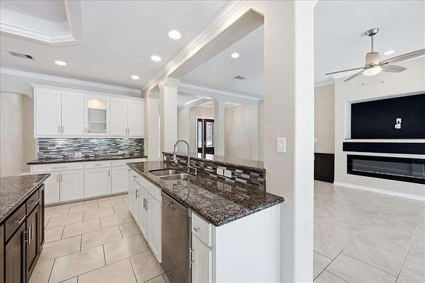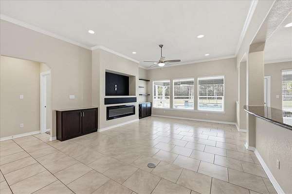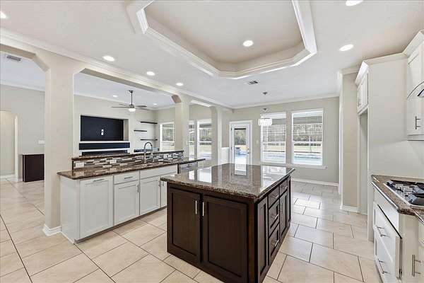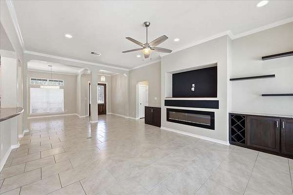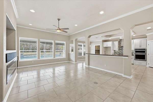 - Blinds/Shades, Breakfast Bar, Carpeting, Ceiling Fan(s), Cook Top, Double Oven, Gas Stove, Granite Counter Tops, Ice Maker Conn., Inside Utility Room, Island Work Center, Open Concept, Sheetrock, Split Bedroom Plan, Tile Floors
