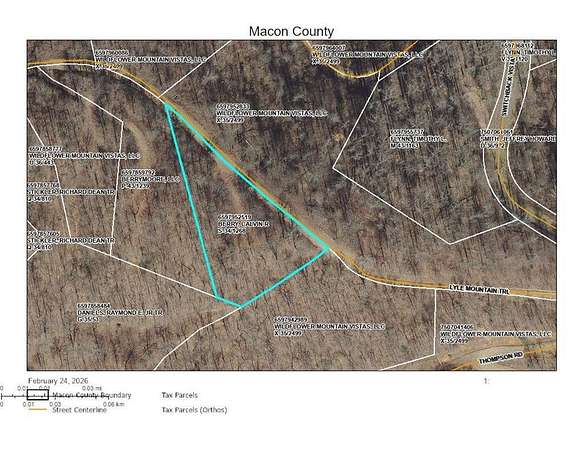 Head west on NC-28 for 6.3 miles. Turn right on Cowee Creek Rd, then slight right to stay on Cowee Creek. Continue onto Ruby Mine Rd, turn right on Dalton Creek Rd, then left on Upper Dalton Creek Rd. Turn left on Doghobble Dr, right, then left onto Lyle Mountain Trl. Follow Lyle Mountain Trl to the property.
