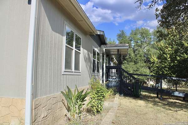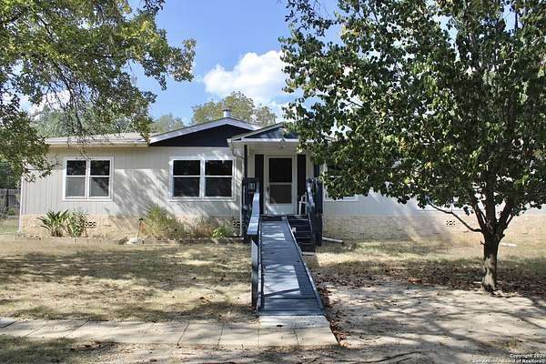 Ready to escape the city noise and lights! This may be the one! Well maintained home sitting on a 2.29 acre lot with tons of oak trees! Like living in a forest! Lots of elbow room! Kitchen & dining area open to living room! Split bedroom arrangement with living areas on each end! Masonry underpinning with rock look finish! Fenced and gated! 2 storage buildings! Come make this little slice of south Texas paradise yours today!