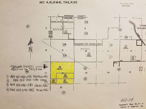 Niland, Ca. Just NE of Bombay Beach. 360 ac M/L located West of Hot Mineral Spa Rd. GPS Lat 33.39363 Long -115.726908 Zoned S-1-RE. which allows for many potential uses including Renewable Energy. You own the Land, No HOA's. Surrounded by Hot Mineral Spa's local in the area as well as very popular neighboring town of Bombay beach just minutes away. Perfect for the investor or build your farm, winter getaway or family compound. IMPERIAL COUNTY. Solar, Lithium or GeoThermal?? Seller also owns adjacent parcels All information deemed reliable however buyer to do their own due diligence to satisfy themselves. Properties sold 'AS-IS'. APN 002-040-079