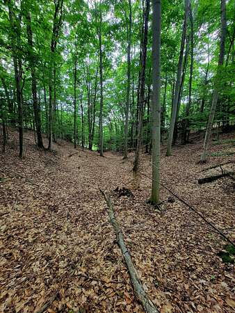 Coming into Arcadia on scenic M22 is a turn off that used to offer panoramic views of Arcadia Lake, Lake Michigan, and the Village of Arcadia. Nowadays the view is limited by the growth of trees, but in the hill behind the turnoff is an undeveloped 6 acre parcel that has the potential to return the views that were once a part of Arcadias history. 6 acres of wooded, steep hills, deep valleys, a rolling playground to build that new home, hike and hunt, explore the potential of opening the views . A mile from Arcadia Bluffs Golf Club, close to beaches at Pierport and Arcadia, hiking trails galore. The property includes an easement through the MDOT land that is adjacent to M22.