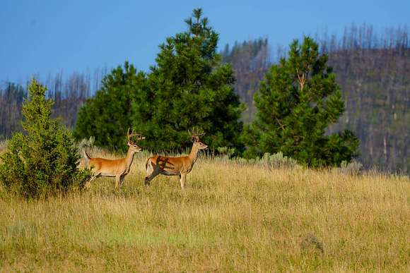 The ranch provides excellent wildlife viewing and hunting opportunities and is adjacent to public lands that are otherwise difficult to access. Resident and migratory elk frequent the ranch, and whitetail and mule deer are plentiful. Other wildlife includes wild turkeys, grouse, foxes, coyotes, mountain lions, black bears, songbirds, raptors, and waterfowl.