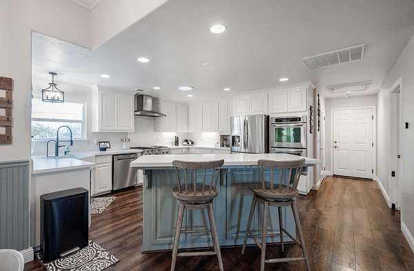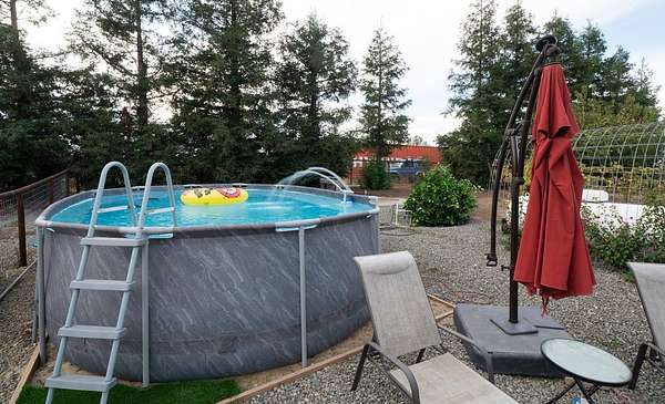 One of a kind! Two homes on two acres with two addresses. Welcome to 37143 Avenue 16. This custom property features owned solar and a nearly new well. The main 4-bedroom, 3-bath home spans 3,200 sq ft on RRS-2 zoning (horses welcome). Step through the double-door entry into a huge open floor plan with engineered hardwood throughout. The chef's kitchen boasts quartz countertops, a built-in ice maker, convection microwave, high-end appliances, a built-in dry cleaner, and a walk-in pantry with a prep kitchen. The spacious master bedroom offers three closets, including a custom walk-in designed by California Closets, plus a linen closet and a massive storage closet in the master bath. Outside, enjoy an outdoor kitchen with fridge, auto water dispenser, and water spout, custom light sconces, a natural wood deck overlooking a year-round producing garden, and a 30x30 insulated shop. The ADU has its own address, approximately 1,000 sq ft with 2 bedrooms and 1 bath, fully set up with a 200-amp meter, water service, and Madera County-approved plans. Don't miss the historical light post from Fowler in the backyard, the tankless hot water heater, and the above-ground pool. Tax and room counts differ; BTV.