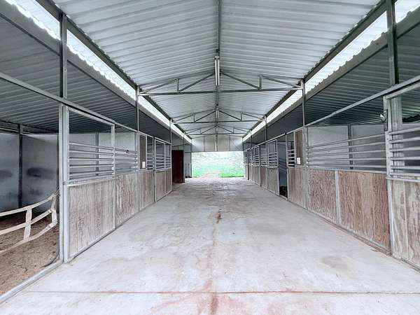 Exceptional horse property in desirable Bonadelle Ranchos, just shy of 10 acres, offering extensive equestrian amenities and a spacious home. The south barn features six stalls including two 12x16' and four 12x12' stalls, a covered wash rack, cross ties, and fluorescent lighting. The north barn includes six stalls total, with three horse stalls, two tack rooms, and an office/tack room, also equipped with fluorescent lighting. Property includes six 12x24' pipe pens in making, a 150x250' sand arena with booster pump and 1,500-gallon holding tank for arena sprinklers, plus nine 30x100' paddocks and one 100x200' paddock with grass and sprinklers (in need of repair). Seller had permit for business that passed. Fully fenced with convenient access to Highways 41 and 99. The home features spacious rooms and a roof approximately 5 years old. The kitchen offers built-in appliances, abundant cabinets and counter space, a central eating area, and a large window overlooking the backyard. A built-in hutch provides perfect storage for cookbooks or display. Living room and dining room combination flows into a step-down family room, ideal for entertaining. The primary bedroom includes a walk-in closet and private ensuite bath. Two other bedrooms and hall bath complete the west side of home that has shade trees nearby. Mud room is between attached, oversized garage and kitchen. There are built-in cabinets for deep storage and a place for another refrigerator and separate freezer. Owned 300-350 gallon propane tank included. Square footage differs from property tax records. Buyer to verify if desired. A rare opportunity for horse enthusiasts seeking space, functionality, and excellent freeway access.