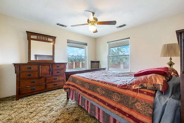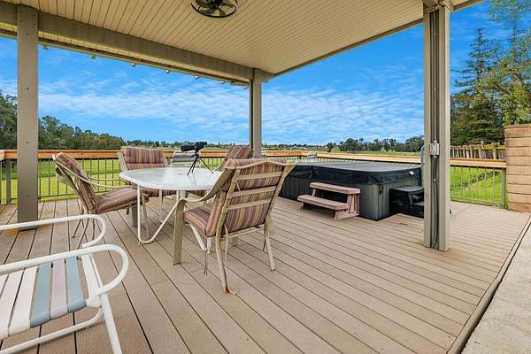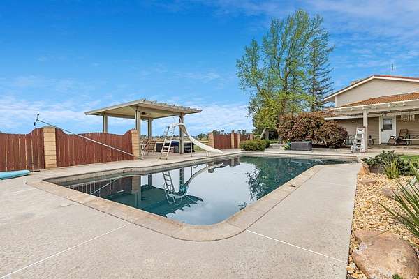 Welcome to 35427 Ave 14. This property has 2 two homes with attached garages, a 30x40 shop, pool, spa, firepit area and is fully fenced with four gates and OWNED SOLAR on 9.8 acres, perfect for a mini farm/ranch. Seller is motivated and willing to credit towards buyers closing costs or rate buy-down. The main home has 3 bed, 2.5 baths, loft/office, laundry room, 2 fireplaces and a 2-car garage. The kitchen features lots of counter space with a big pantry and can lighting. The living room has ceiling fan and fireplace perfect cozying up with a book. Tile, laminate & carpet flooring throughout, ceiling fans in all bd(s), lots of closet space, X-large primary bedroom with walk-in shower, double vanity, two walk-in closets and a balcony. The 2nd home is 3 bed, 2 bath, appox 2000 sqft with a 2-car garage. The kitchen with breakfast area is open to the living room and dining area. Its own electric, propane, address, septic system and shares water with main home. This unique property offers the perfect balance of privacy and convenience, with two homes, ample space, and endless possibilities for both work and play. Whether you're looking for room to grow, need space for hobbies, or want to entertain in style, this property has it all. Located in a peaceful setting, it's an ideal place to call home. Do not miss the opportunity to make this your home!