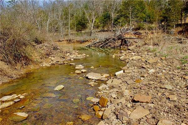 53+/- acre property, with Reed Creek frontage, a tranquil pond, and a natural spring. If you're looking to build a peaceful retreat or a family homestead, this land offers multiple build sites both at the mountain's peak and its base, providing a scenic views and private setting. The rock bluffs add character to the landscape, making this property as picturesque as it is practical. Utilities are in place with electric on-site and Madison County water available at the road, simplifying development. Access is easy with gravel road frontage, ensuring year-round reachability while maintaining a sense of seclusion. Another unique feature is Reed creek running along the southern border. Ideally located just 9 miles from Huntsville, AR, and only an hour from Springdale, this property offers the perfect balance of seclusion and accessibility. Outdoor enthusiasts will appreciate the proximity to the Kings River, just 20 minutes away, and the iconic Buffalo River, a mere 38-minute drive.