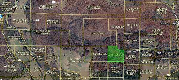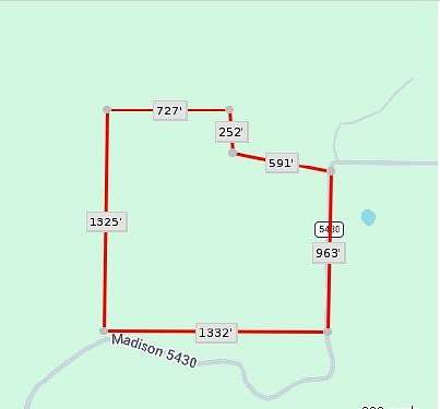 From Fayetteville (Highway 16 and Highway 265). Take Highway 16 East towards Crosses for 20 miles. Turn left onto Madison 5430 Road right after Pig Trail Country Cafe. Follow road for about a mile. Once you pass the big cattle farm on the left hand side you will come up a hill. The proeprty is on the left. There is a gate to the property.