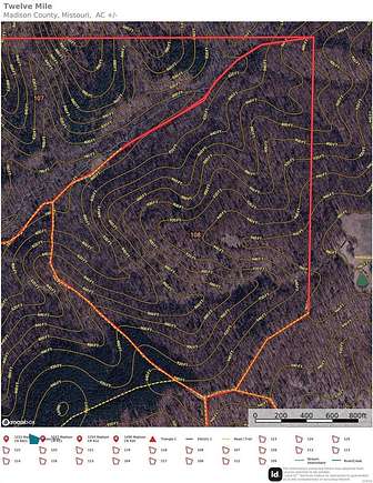 This 77+/- acre property is in Madison County, MO just south of Fredericktown minutes from US Highway 67. Ideal for the nature enthusiast, this land offers endless potential for outdoor recreation, hunting, camping, ATV's & off-roading, or simply communing with nature. The property is all wooded and has deeded access to Twelve Mile creek. The timber stand is made up of mostly young hardwood trees & mature pines scattered in clusters across the landscape. This tract is equipped with two small clearings perfect for food plot locations. Mark Twain National Forest borders this property to the east which offers over 20k additional acres to recreate & explore at your leisure. There is additional privately owned acreage available adjacent to this tract with added features and amenities. This property is unincorporated & unrestricted, so all building types & uses are permitted. Don't miss your chance to own a piece of the Ozarks!