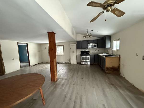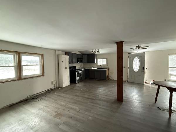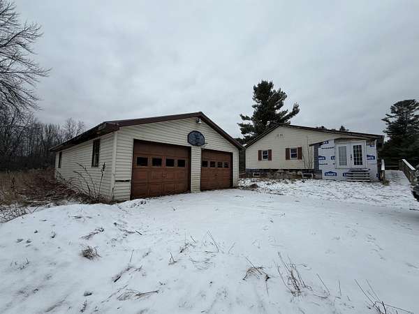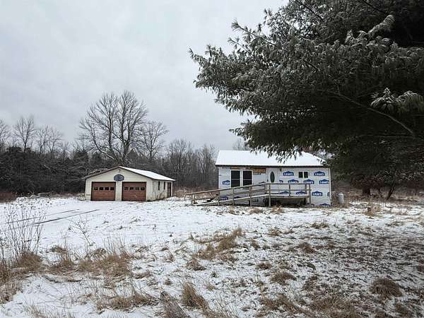 Situated on 2 lots totaling 5.1 acres, with 535 feet of road frontage, paved driveway, 24' x 30' detached garage with a third overhead door in the back, drilled well, septic and an extra power pole entrance second parcel, this 2 bedroom, one bathroom, 1020 square foot ranch style home with a basement and metal roof is a PRICED TO SELL fixer upper. The interior offers an open floor plan with a great room including the kitchen, dining area and living room. The main bedroom is very generously sized appearing like it was once 2 bedrooms. The second bedroom is decent sized as well. This home is being sold AS IS!! There is an oil furnace in the basement, gas stove and washer and dryer, the seller states their condition is unknown. There is drilled well in the front of the property and the septic location, material and condition are unknown. If you are in the market for a home with rehab potential or a great 5.1-acre parcel with the driveway, well, septic, garage and utilities in place in the Norwood-Norfolk School District this is a great buy!! Cash buyers or buyers pre-approved for a purchase plus improvement loan are encouraged to schedule a showing right away!!