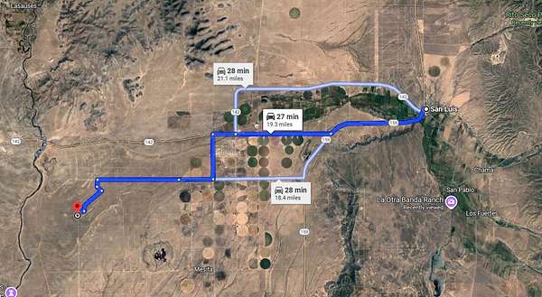 This 5-acre parcel sits near San Luis, CO -- just 27 minutes (19.3 miles) from town. The terrain is gently sloping, perfect for a cabin, tiny home, or weekend campsite. Access is via a dirt road maintained by the county, so you'll always have a way in. There's no HOA to restrict your plans, giving you freedom to use the land your way.