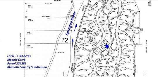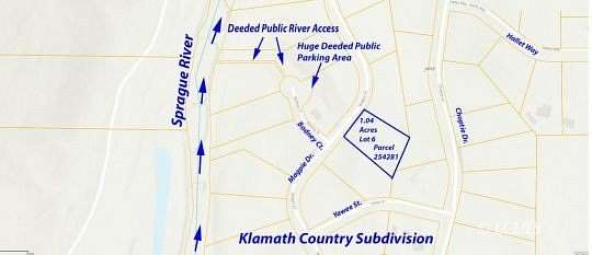 Est $139/mo1.04 Acres in Klamath Country, in Chiloquin, Oregon. This treed parcel is in a nice area of Klamath Country and just across the street from a dedicated Sprague River Access point in Bodney Court. Stroll from your parcel and walk along the clear, pristine waters of the Sprague River. Catch a trout for dinner if you'd like. Nice open area in the trees for your home. Manufactured homes are allowed. Farm animals are allowed.Power and phone are along the road edge. Nicely packed gravel access roads.