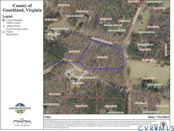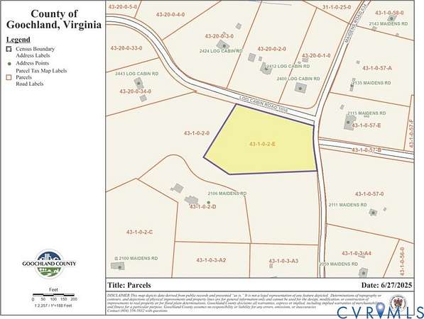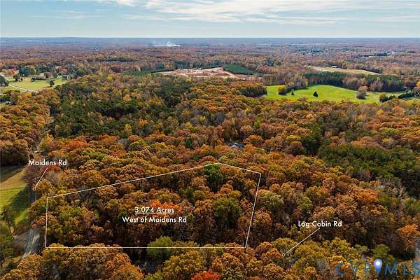 Est $1,678/moNew Homesite totaling 3.074 acres. Property offers beautiful 80+ year old hardwoods. Located in Maidens VA - Lickinghole District. 2 miles to Goochland's New Elementary School, Middle & High School. 1.5 Miles to J Sargent Reynolds Community College, YMCA, Courthouse & 14 miles to Short Pump. Lot is perked for conventional septic up to 4 bedroom home. Approved driveway access off Log Cabin Road. NO HOA!! Underground Power & Internet (Comcast). Quiet dead end road with absolutely no road noise. Seller has multiple builders available upon request. Seller has another lot with 3 acres
