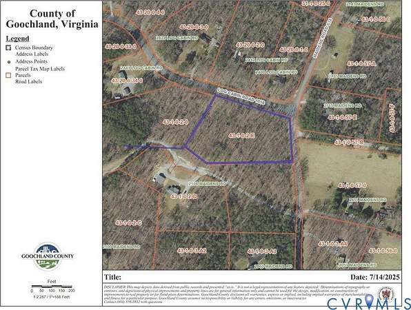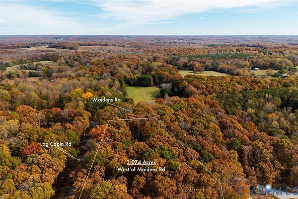 New Homesite totaling 3.074 acres. Property offers beautiful 80+ year old hardwoods. Located in Maidens VA - Lickinghole District. 2 miles to Goochland's New Elementary School, Middle & High School. 1.5 Miles to J Sargent Reynolds Community College, YMCA, Courthouse & 14 miles to Short Pump. Lot is perked for conventional septic up to 4 bedroom home. Approved driveway access off Log Cabin Road. NO HOA!! Underground Power & Internet (Comcast). Quiet dead end road with absolutely no road noise. Seller has multiple builders available upon request. Seller has another lot with 3 acres. From Broad St Rd turn onto Fairground Rd (3.5 miles) turn right on Maidens Rd (.6 MI). Lot on Corner of Log Cabin Rd and Maidens Rd