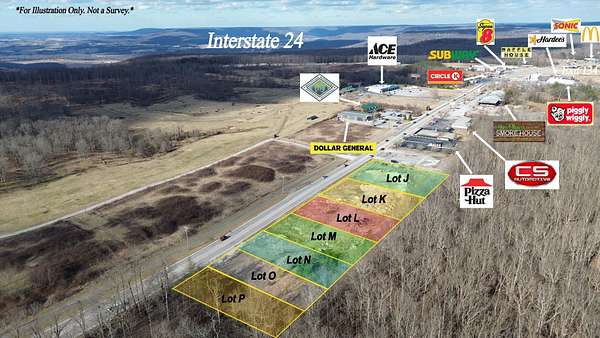 MEGA LAND CONSIGNMENT AUCTION! SATURDAY, APRIL 11TH @ 10AM. 21 PROPERTIES IN FRANKLIN, COFFEE, & MARION COUNTY. AUCTION LOCATION: 1561 PHILLIP FULMER PKWY, WINCHESTER, TN. BID LIVE IN PERSON OR ONLINE! This commercial lot is located less than ½ mile from Exit 134 on I-24 in a rapidly growing commercial corridor. The property has access to city water, sewer, and power at the road, making it ready for development. Within one mile of the property are numerous successful businesses, including Pizza Hut, Dollar General, Mountain Outfitters, CS Automotive, Jim Oliver's Smoke House, Circle K, Piggly Wiggly, Subway, Hardee's, Super 8, Waffle House, Sonic Drive-In, and McDonald's, among others—demonstrating the strong commercial presence in the immediate area. Just down the road are two upscale residential communities, Cliff Tops and Cooley’s Rift, and the property is less than a 10-minute drive to The University of the South in Sewanee. What makes this property truly unique is its special use exemption that allows for multifamily residential development. Whether you are looking for an excellent site for a commercial venture or planning to build residential apartments, this property offers exceptional potential. Don’t miss this opportunity at auction!