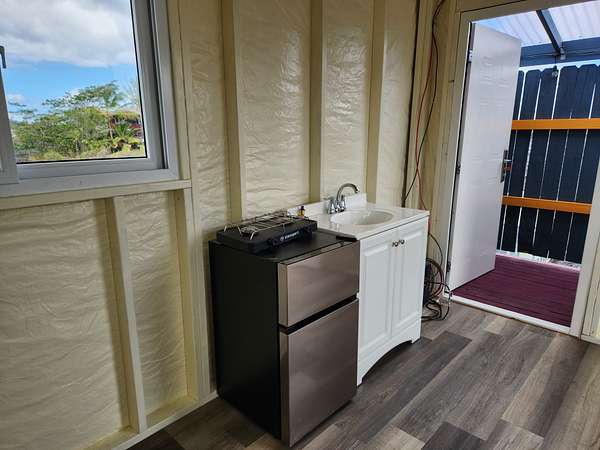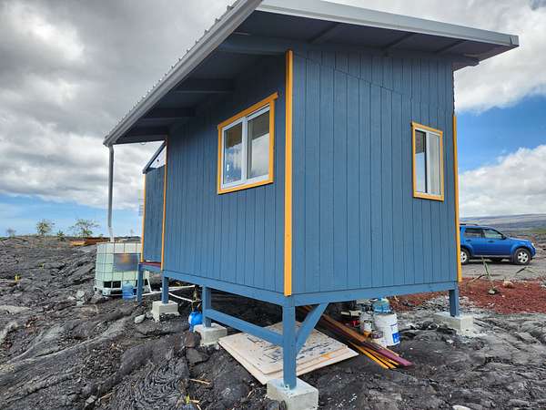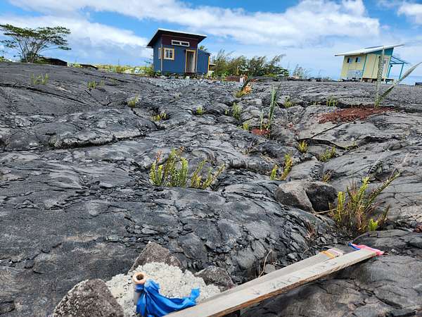 Est $494/moExcellent location in the subdivision and just a short drive off of paved Chain of Craters Rd in beautiful Kalapana Vacation Lots, formerly known as Kalapana Gardens. Endless unobstructed views of the pali and even witness nightime glows when the eruption in Halemaumau is active. Enjoy the cool comfort of the small off-grid cabin as your home base. It comes with a solar system to run your water pump, lights, electronics, small fridge and is run by an inverter that can even act as a battery if you need added power to run your tools. Plenty of leveled space is left on the lot to build a larger cabin. The septic system is installed and the lot is already partially landscaped. Add your finishing touches with your favorite tropical plants!