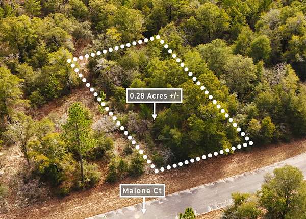 It is surrounded by typical North Florida vegetation such as pine flatwoods and native understory, consistent with the character of the surrounding neighborhood.