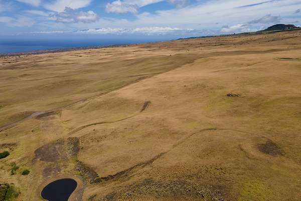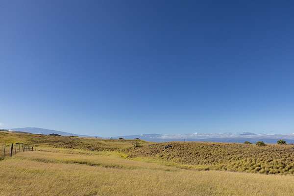 This prime 5-acre lot in the Meadows II section of Kohala Ranch has a driveway roughed in to an elevated building site. Depending on which direction you turn your gaze, enjoy sweeping ocean, sunset and coastline views; views of Haleakala (Maui), Mauna Kea, Mauna Loa and Hualalai volcanoes; and the green hills of Kohala Mountain. Lot 683 is located on the mauka (uphill) side of the Maluhi St cul-de-sac, affording unobstructed views over homes on lots below. On the northeast side of this lot the terrain is hilly, providing natural protection from the trade winds. On the south side of the lot is a gulch, giving separation from the neighboring lot on the coastline view side. A broad relatively flat area just above the middle of the lot is where the original owners had picked out as the best building site. The lot is at approximately 1800 feet elevation, a perfect altitude to save on air conditioning in the hot summer months, and enjoy putting on a hoodie for cooler nights when winter comes and you want to dine outside and enjoy the starry skies. Kohala Ranch is a gated community with CC&Rs and design guidelines for consistency of the ranch aesthetic. The Ranch is located just north of the Kohala Coast resorts with their beaches, golf, restaurants and entertainment options, and shares the sunny year-round climate. Enjoy Saturday farmers markets in either Waimea (Kamuela) or Hawi town...approximately equidistant from your home. The two towns also have groceries, restaurants, medical services, restaurants, and art galleries.