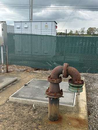 Infrastructure in place: includes a large pumping station, multiple manholes, and several fire hydrants