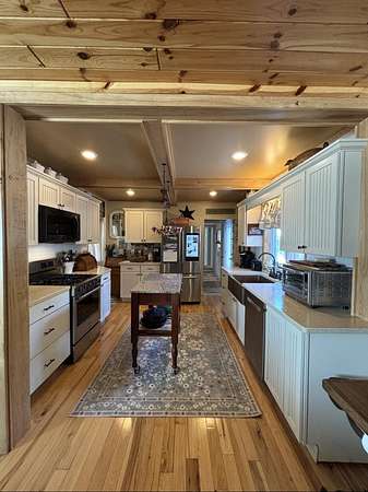 This beautiful, historic renovated farmhouse & gambrel barn are located just outside of the Manchester city limits on 14.84 acres. 4 bedrooms, 3 baths, hardwood floors, Mid-Continent cabinetry, master bathroom with radiant heated floor, end match hardwood on ceilings, quality, custom craftsmanship throughout; all mechanical, windows, siding and life time roof have been updated; guest suite in historic barn along with a 36 x 30 finished and heated workshop, 20 x 30 finished heated shop, 20 x 90 storage barn; 32 x 40 pole barn, three Azek decks, 16 x 16 gazebo two ponds stocked with fish and much more! All renovations have been completed in the last 13 years.