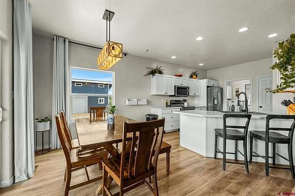 Lauren Ammerman, The Wells Group of Durango, LLC, C: 970-903-1333, lauren@wellsgroupdurango.com, www.laurenammerman.com: La Plata Mountain views, immaculately maintained like-new home, huge shop, 3.67 useable acres, ready for animals, minutes from the heart of downtown Mancos. Step inside to an open floor plan flooded with natural light, highlighting the crisp, clean finishes throughout. Kitchen is a bright, inviting space with white cabinetry and counters, Whirlpool stainless steel appliances, a farmhouse sink, bar top seating, and easy access to both the mud/laundry room and attached garage. The adjacent dining area opens directly to the backyard, where "in-your-face" mountain views steal the show. Four spacious bedrooms, three full bathrooms, and a powder room for guests, there's room for everyone to spread out. High-end window treatments, elegant lighting, Navien on-demand hot water, and a full laundry room elevate the home's overall comfort and efficiency. The home has been professionally painted within the last year and is truly move-in ready. 40'x30' fully-insulated shop offering two large slider doors, a wood-burning stove, and ample light--ideal for hobbies, storage, or workspace. Entire property is enclosed with no-climb welded 3" pipe fencing and accessed via solar-powered entry gates--perfect for animals and privacy. Animal lovers will adore the cutest chicken coop in Montezuma County, currently home to pampered chickens and turkeys. There's also an extra shed--ideal for 4-H animals, yard tools, or even a whimsical kids' playhouse. Don't miss this rare gem that blends modern finishes, functional acreage, and unbeatable mountain views--all within a short drive to town. Whether you're starting a hobby farm or simply craving wide-open space, this home is ready to welcome you.