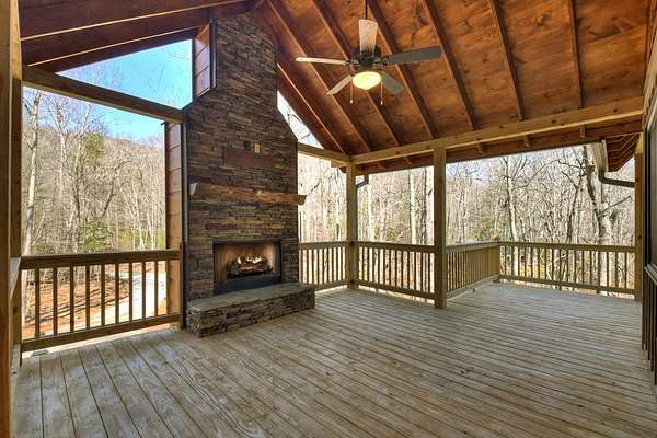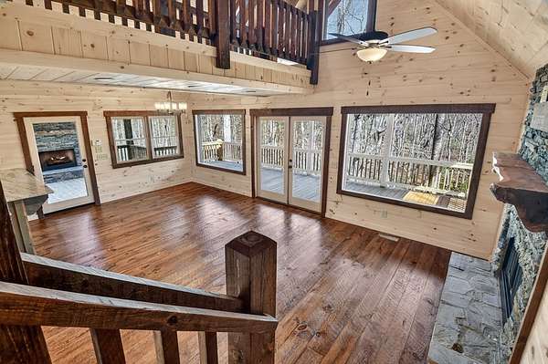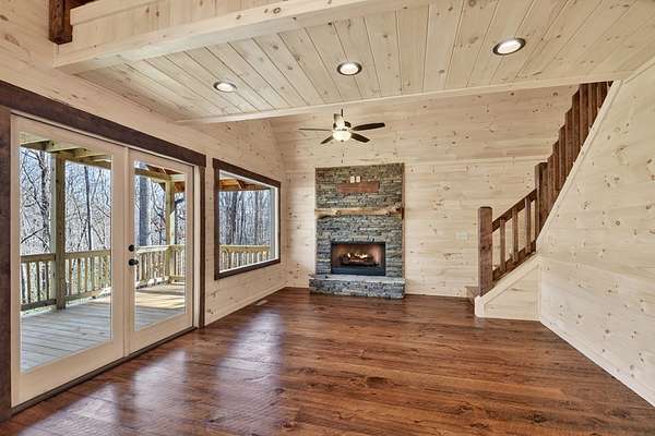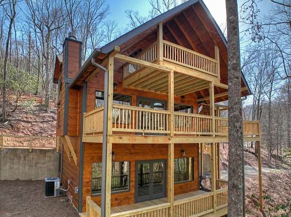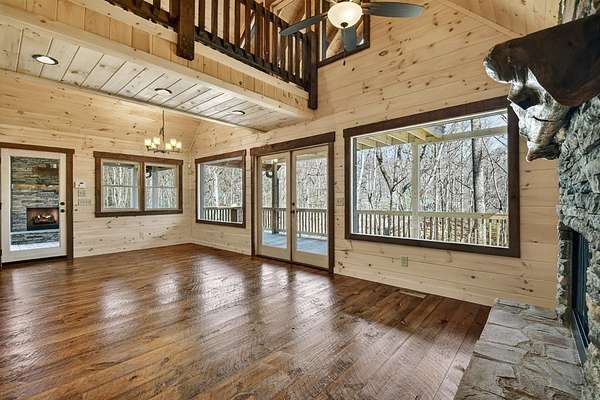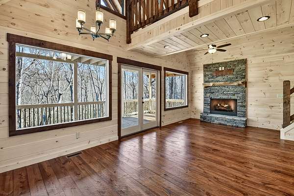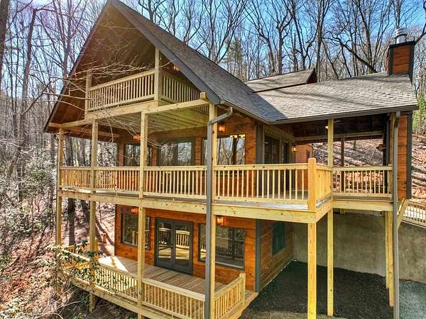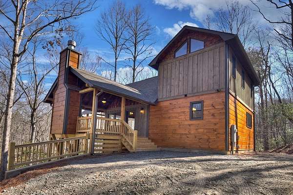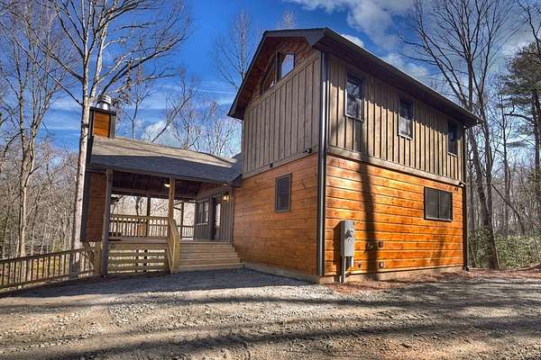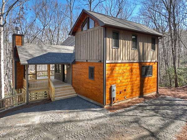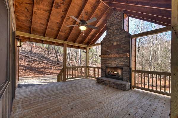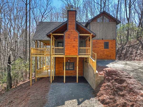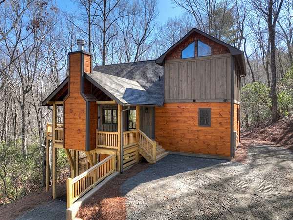 Endless Adventure Awaits where the Heart of the Cohutta Wilderness Area Beats....Quick Paved Access directly into the Largest Wilderness Area this side of the Mississippi). This Very Private Setting boosts 358' ft of "Twists & Turns" of Callahan CREEK frontage along w/a Seasonal Mountain View from the Porch of this BRAND NEW & Exciting Chalet w/Floor to Ceiling GLASS WALL bringing the Forest Inside thru LARGE Fixed Glass Windows. Party Porch Entry Porch w/"Wood Burning" Fireplace (Gas Starter) wraps around to a Large Covered Front Porch in the trees. All Wood Interior (Walls & Ceilings) & "Circle Sawn" Floors. Great Rm Opens up w/a Dramatic "CATWALK" inside the Beautiful Wood Cathedral Ceiling leading to an Intimate Covered PEAK high above the Creek. Great Rm's centers around a Wide "Stone Fireplace" (Vented "Wood-Burner" w/Gas Starter), a "Corner" Dining Area w/Fixed Glass on BOTH Sides & Kitchen w/Custom Cabinetry & Raised STONE Counter Bar (Gas/Electric Range Ready). Main Level Bedroom & Full "Spacious" Bath. Upper Level w/Loft Area, Catwalk & Bedroom Suite (w/Wood Cathedral Ceiling) & 2nd Full Bath (Double Vanity, Large Shower) Finished Terrace Features 9' Ceilings in the Bonus Family Rm w/Wet Bar & Large Fixed Glass Windows. Laminate "Wood Like" floors, 3rd Bdrm , 3rd Full Bath & FULL Size Laundry Rm finishes out this Level. Zoned Electric HVAC, Long Level Driveway Approach leads Deep away from the Road creating a Private Settling on this 1.5 ac lot above the Level Shoreline of 358' of Callahan Creek. Short Term Rentals Permitted, Poured Concrete Retaining Wall. Gentle Area on the back side of the Cabin to access the Shoreline. Cabin is Completed and ready to Move In.