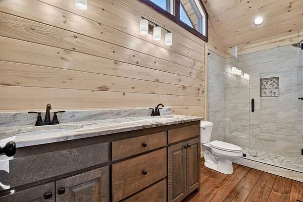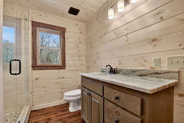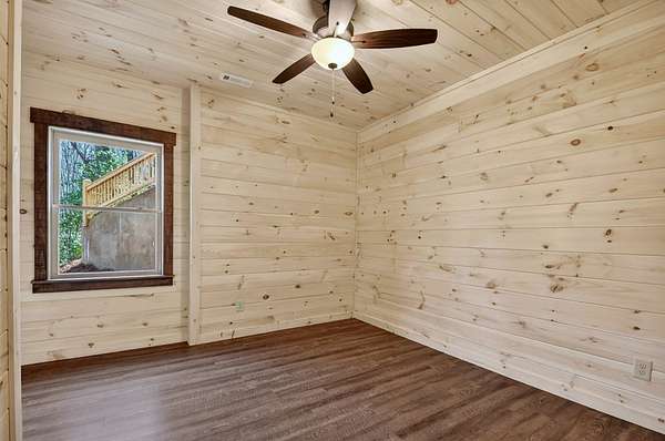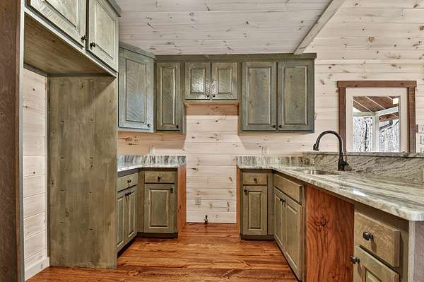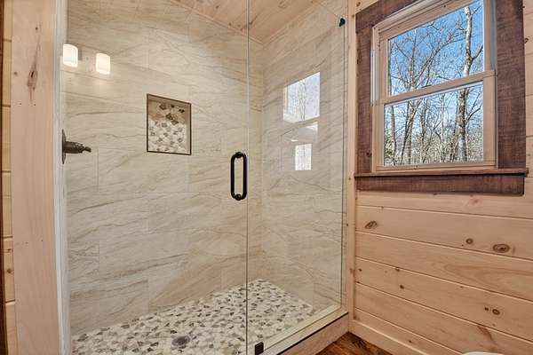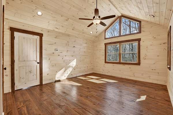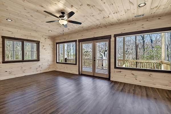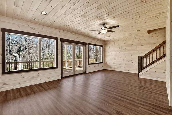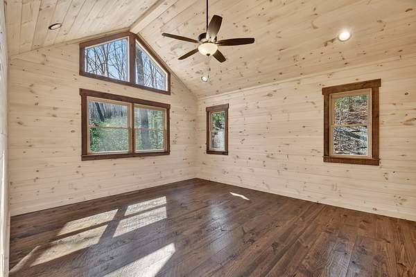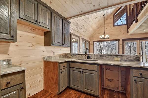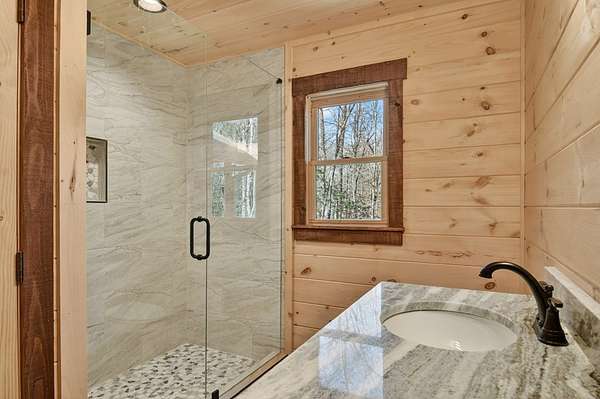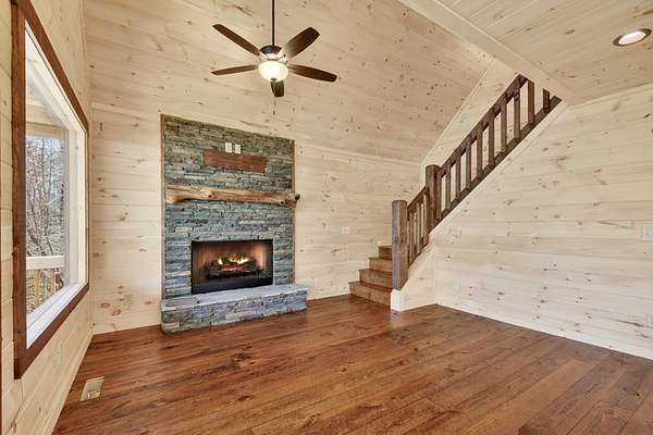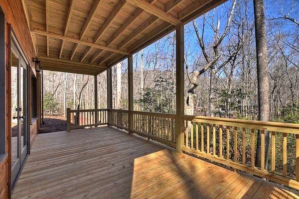 Endless Adventure Awaits where the Heart of the Cohutta Wilderness Area Beats....Quick Paved Access directly into the Largest Wilderness Area this side of the Mississippi). This Very Private Setting boosts 358' ft of "Twists & Turns" of Callahan CREEK frontage along w/a Seasonal Mountain View from the Porch of this BRAND NEW & Exciting Chalet w/Floor to Ceiling GLASS WALL bringing the Forest Inside thru LARGE Fixed Glass Windows. Party Porch Entry Porch w/"Wood Burning" Fireplace (Gas Starter) wraps around to a Large Covered Front Porch in the trees. All Wood Interior (Walls & Ceilings) & "Circle Sawn" Floors. Great Rm Opens up w/a Dramatic "CATWALK" inside the Beautiful Wood Cathedral Ceiling leading to an Intimate Covered PEAK high above the Creek. Great Rm's centers around a Wide "Stone Fireplace" (Vented "Wood-Burner" w/Gas Starter), a "Corner" Dining Area w/Fixed Glass on BOTH Sides & Kitchen w/Custom Cabinetry & Raised STONE Counter Bar (Gas/Electric Range Ready). Main Level Bedroom & Full "Spacious" Bath. Upper Level w/Loft Area, Catwalk & Bedroom Suite (w/Wood Cathedral Ceiling) & 2nd Full Bath (Double Vanity, Large Shower) Finished Terrace Features 9' Ceilings in the Bonus Family Rm w/Wet Bar & Large Fixed Glass Windows. Laminate "Wood Like" floors, 3rd Bdrm , 3rd Full Bath & FULL Size Laundry Rm finishes out this Level. Zoned Electric HVAC, Long Level Driveway Approach leads Deep away from the Road creating a Private Settling on this 1.5 ac lot above the Level Shoreline of 358' of Callahan Creek. Short Term Rentals Permitted, Poured Concrete Retaining Wall. Gentle Area on the back side of the Cabin to access the Shoreline. Cabin is Completed and ready to Move In.