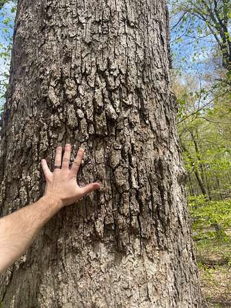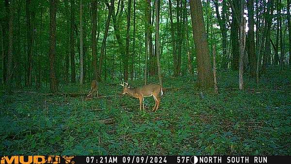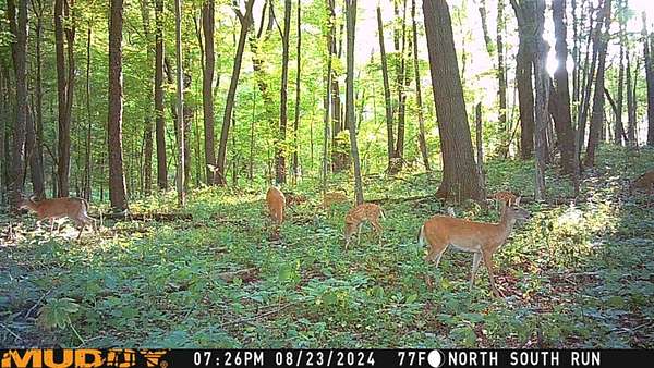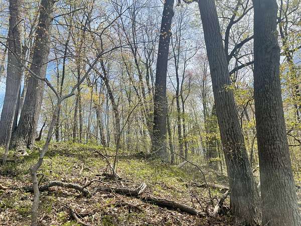 Rolling terrain with mature oak and elm trees throughout