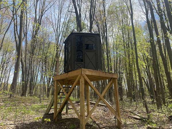 Blinds and tree stands have been removed but blind platform still remains with the land
