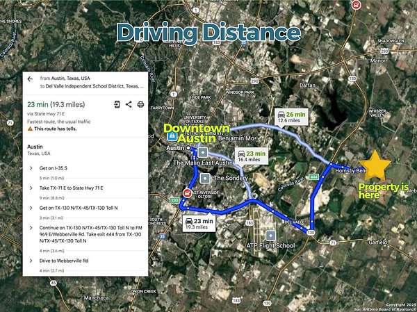 MUST SEE - 0.6-acre corner lot in the rapidly growing city of Manor, Texas. Ideally positioned at FM 969 and N Dunlap Rd, this cleared parcel offers excellent highway access and convenient proximity to shopping, dining, and entertainment. Located just 14 minutes from Austin-Bergstrom International Airport and approximately 22 minutes from Downtown Austin, the property delivers both accessibility and long-term appeal. This versatile lot presents an outstanding opportunity to build a custom home or secure a smart investment in one of the Austin metro's fastest-growing markets. Manor continues to see strong residential and commercial expansion, driving increasing demand and rising property values throughout Travis County. Enjoy the charm of a growing community paired with the convenience of nearby Austin employment centers, cultural attractions, and major amenities-all while maintaining a more relaxed suburban lifestyle. Ideal for a primary residence, investment property, or strategic land banking in a high-demand growth corridor.