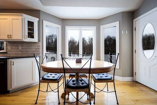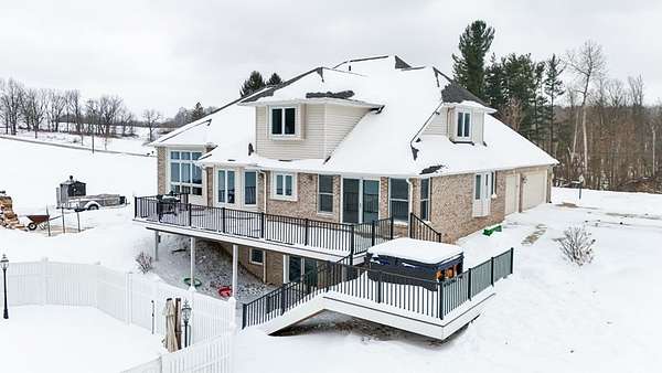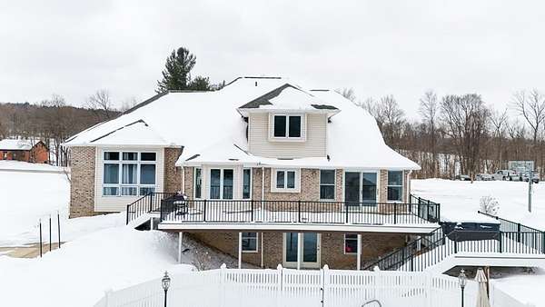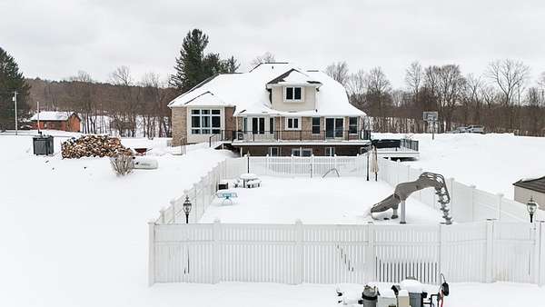 Welcome to this Privately set home on 8.4 pristine acres, this exceptional estate home offers a rare blend of luxury, privacy, and refined living. Featuring six bedrooms, two full bathrooms, and two half baths, the home is thoughtfully designed for both elegant entertaining and everyday comfort. The primary suite on the main level provides a serene retreat, while three bedrooms upstairs offer privacy and functionality. The lower level includes two additional bedrooms, ideal for guest. Outside, enjoy a resort-inspired setting with an in-ground pool creating a peaceful environment with exceptional seclusion. Pool is heated by outdoor wood burner if needed. A rare estate opportunity for those seeking acreage, elegance, and lifestyle-driven living where luxury meets nature. Conveniently located just 7 minutes (approximately 4 miles) from Snow trails