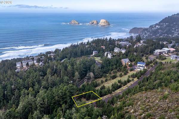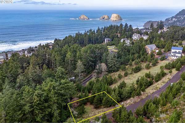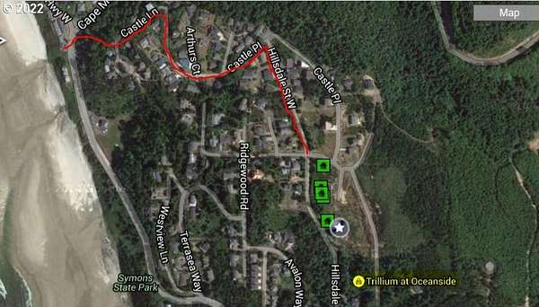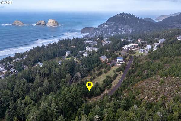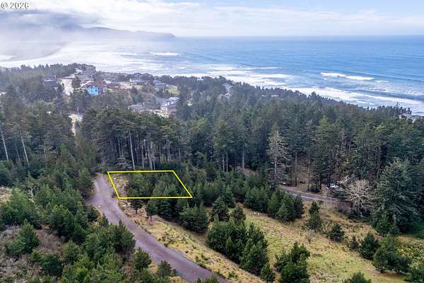 Est $688/moOcean view lot with wide street frontage. Paved private road, all utilities to the lot, all underground. Located about 1/3 mile from beach trail which also accesses downtown Oceanside. Quiet neighborhood. Gated. Sloped to gently sloped, this is Lot #2 on the Site Map and Tax Lot 241 on Plat Map.