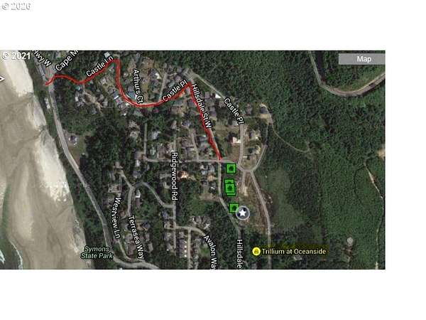 Est $667/moOcean view lot with wide street frontage, gently sloped downhill from road. Paved road, all utilities stubbed to lot, all underground. Located about 1/3 mile from beach trail which accesses downtown Oceanside. Quiet neighborhood. Gated. This is Lot 4 on the Site Map and Tax Lot 238 on Plat Map.