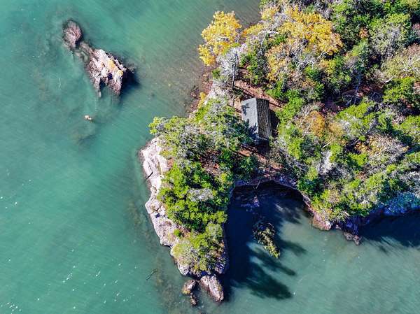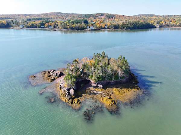 Discover the rare opportunity to own a private island retreat in the pristine waters of the St. Croix River. Little Dochet Island is beautifully positioned off the shores of Robbinston, Maine, with nearby Canadian coastline and direct access to Passamaquoddy Bay and the open ocean. Elevated and predominantly wooded, the island remains largely untouched, offering sweeping 360-degree views that showcase the surrounding water, sky, and rugged coastal beauty from every angle. A classic one-room cabin sits atop the island, oriented toward the northeast with views toward Canada. The cabin enhances the island's rustic charm and has been thoughtfully updated with new windows, fresh paint, and new siding. At low tide, a sandy beach emerges along the south side of the island, while the north and eastern shorelines feature dramatic rock formations and a more rugged coastline. The south-facing beach is naturally protected and shared only with local wildlife, including seals and bald eagles, creating a truly peaceful and immersive coastal experience. Distinctive bluffs, sculpted rock outcroppings, and winding natural paths make exploring the island a rewarding and scenic experience. Total seclusion and privacy define this property, making it an ideal escape for nature lovers seeking tranquility and solitude. Towering trees and lush greenery surround the island, offering a serene setting perfect for quiet reflection, photography, birdwatching, picnicking, camping, or simply unwinding in the calm of the natural environment. The island is accessible by a quick five-minute motorboat ride from the mainland, with additional opportunities to explore the river by kayak. There are no utilities or services on the island other than cell service, preserving its unspoiled character. Boating enthusiasts will appreciate the surrounding waters, well suited for both leisurely cruising and coastal adventure. Showings are by advance notice only. Broker owned.