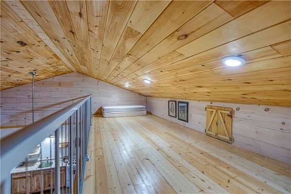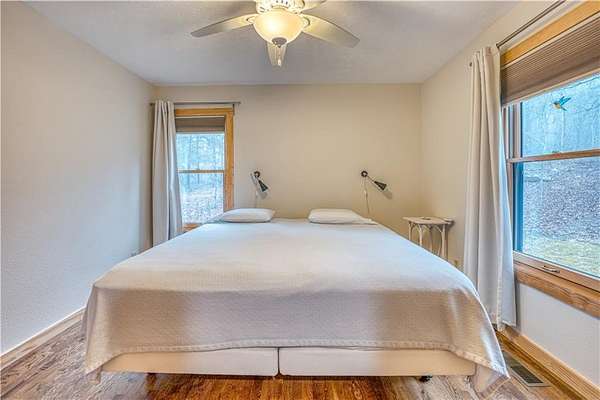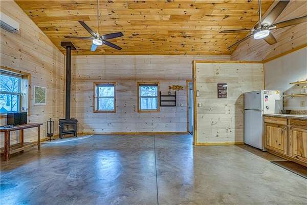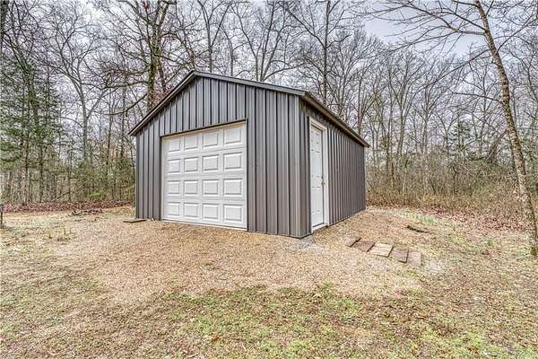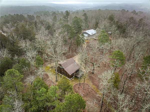 A remarkable opportunity to own two homes on 17.15 acres with a stream and waterfall near the Buffalo National River in Marble Falls, AR. First home is a 1200sqf cabin with custom touches throughout that include maple cabinets in kitchen and bathrooms, quartz countertops, window shades, oak hardwood flooring, oak plank ceiling, and composite decking with metal and cable railings. The cabin also features new windows throughout within the last 5 years. The second home is a 30x50 barndominium with 750sqf of living space and 750sqf of garage/storage space built within the last 10 years. The red iron built barndo features 10' spray foam insulated walls with an impressive primary bedroom, a spacious loft area, wood stove, two mini-split units, and an 8x50 covered porch. The 17+ acres is adorned with Redbud trees, wild flowers, a stream with a waterfall, numerous hiking paths throughout the property, and a level location with a view and rural water on site perfect for building a third living quarters.