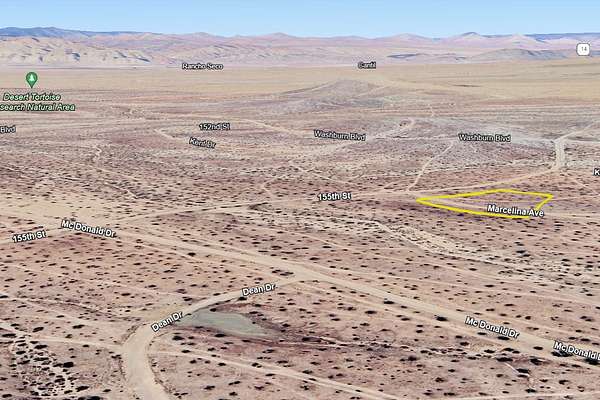 This huge plot of property allows you to establish your own desert getaway or cultivate a sustainable off-grid existence. This property allows you to experience off-grid life at its best, utilizing solar power and other resources to establish a genuinely eco-friendly homestead with limited amenities. Whether you want a calm escape from city life or a new adventure in the untamed countryside, this vacant acreage on Marcelina Ave. offers a unique opportunity to make your off-grid living dreams a reality!