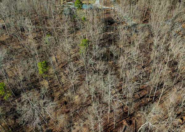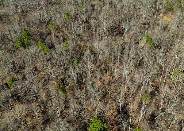 The property is wooded with a mix of oaks, hickories, pines, and other native vegetation, providing privacy and natural scenery.