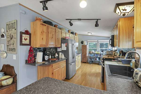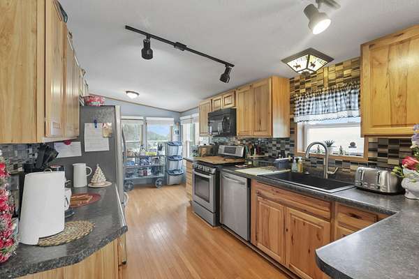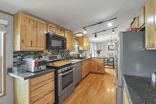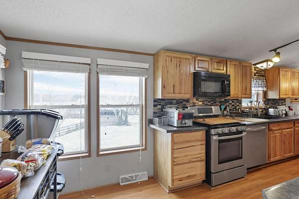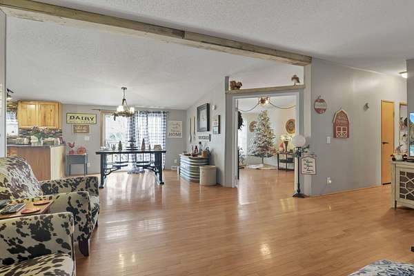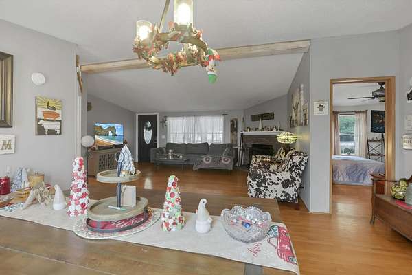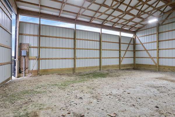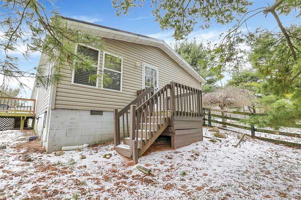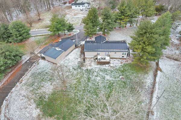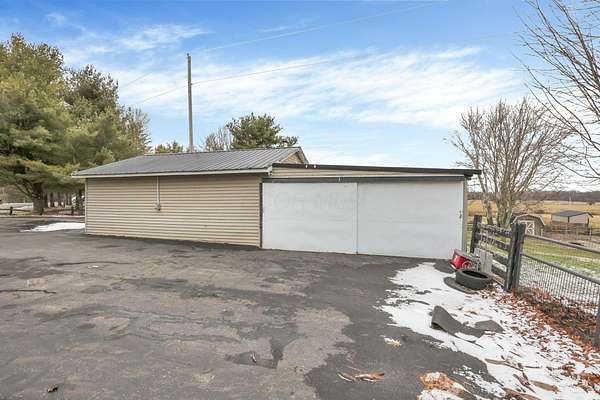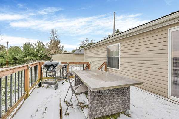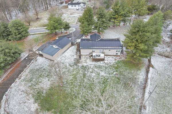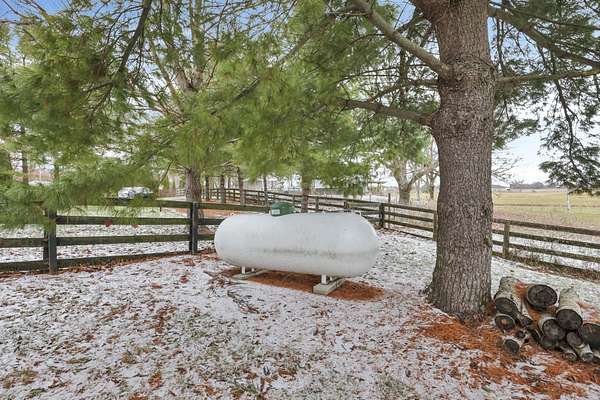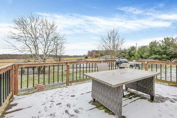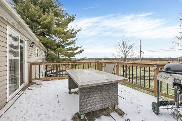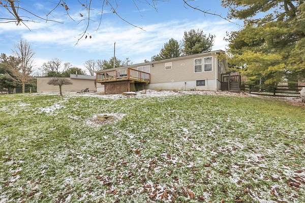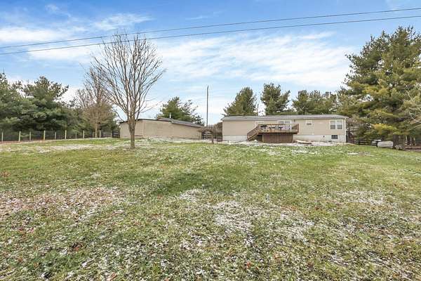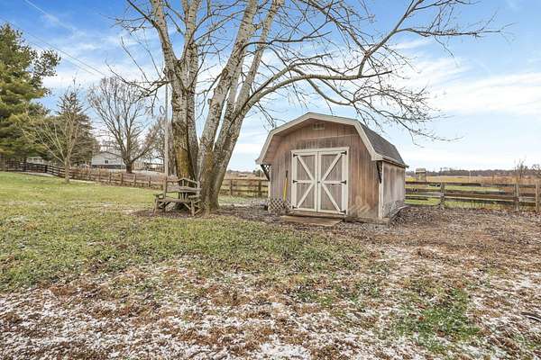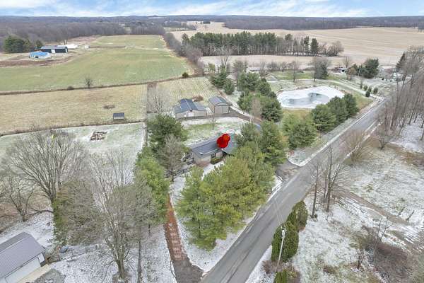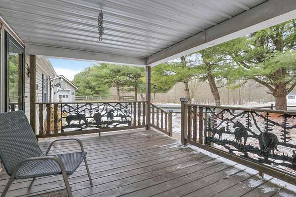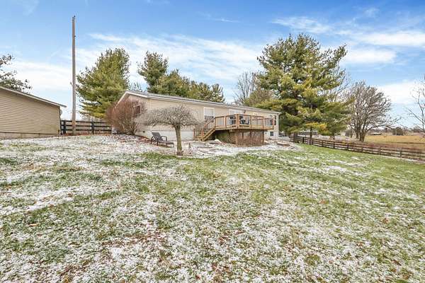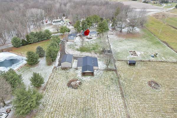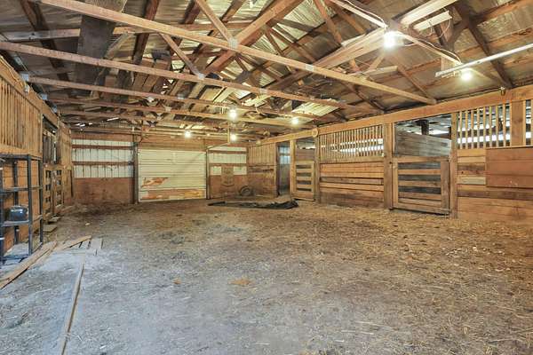 Step onto the welcoming front porch with custom railings and fall in love with this beautiful 3-bedroom, 2-bath, open-concept ranch home. Perfect for a horse or mini-farm setup, this property offers both comfort and functionality on nearly 4 acres. Inside, gleaming hardwood floors flow throughout the spacious layout filled with natural light. Enjoy a dedicated den, a large kitchen with upgraded Hickory cabinets, gas range, and generous eat-in space, plus a separate dining area ideal for larger gatherings. The exterior is just as impressive, featuring a heated 2-car detached garage with additional storage in rear of garage. A 48' x 40' horse barn with 8 functional stalls, A 352 sq ft lean -to and an additional 24' x 36' outbuilding for equipment storage. Two fenced pastures--one with a lean-to shelter--provide excellent options for animals or outdoor hobbies. Relax on the back deck and take in the peaceful beauty of this exceptional property. A rare opportunity to enjoy country living with all the conveniences you need.