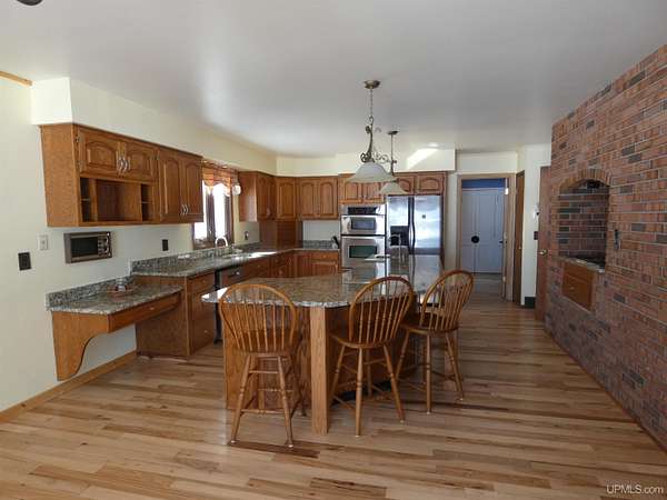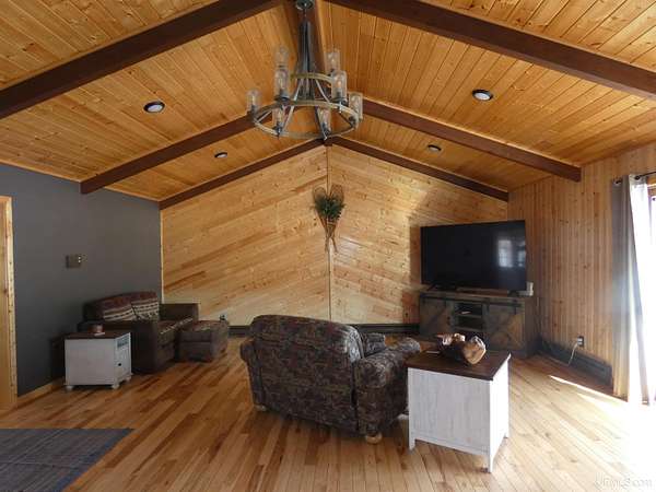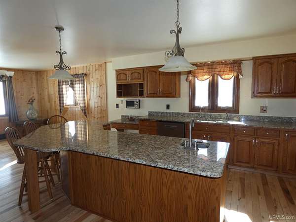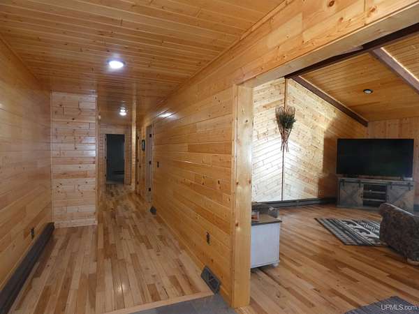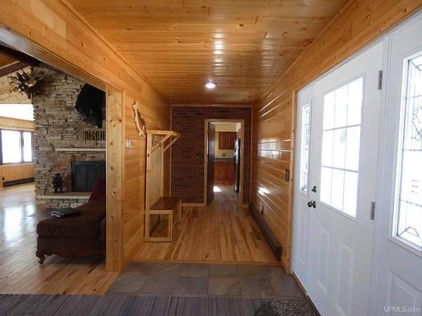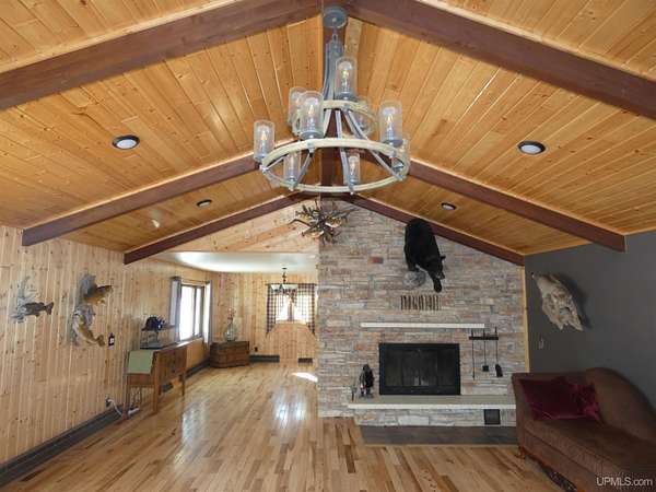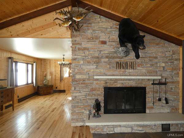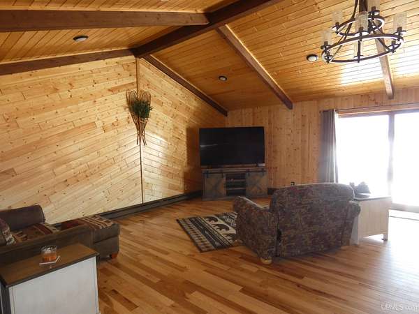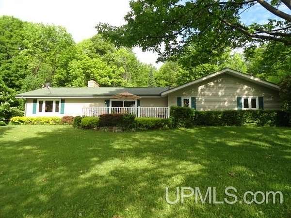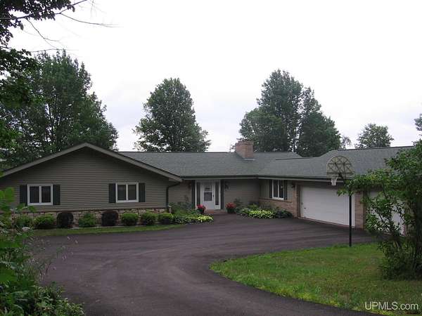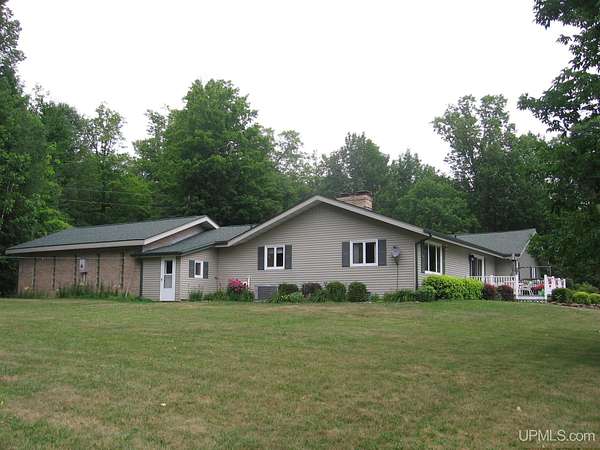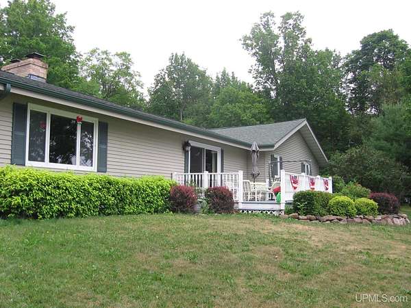 Welcome to your dream waterfront retreat! This beautifully remodeled 4-bedroom, 3-bath ranch-style home sits on 7.8 private acres with an impressive 571 feet of manicured frontage on Gogebic Lake — the largest inland lake in Michigan’s Upper Peninsula. Renovated in 2020, the home features stunning tongue-and-groove hickory flooring throughout the living room, kitchen, and hallway, along with warm tongue-and-groove pine accents that create a true Northwoods feel. The spacious layout offers comfortable main-level living, including a custom handicap-accessible master bathroom designed for both luxury and convenience. Enjoy breathtaking lake views and endless outdoor recreation right from your property. With 571 feet of pristine shoreline, you’ll have exceptional fishing, boating, and year-round enjoyment. The private boat house includes an electric lift, making lake access effortless. In winter, step outside to some of the region’s best snowmobiling trails. Additional features include: 3-car attached garage with blacktop driveway, Expansive manicured grounds offering privacy and serenity, Open-concept living spaces ideal for entertaining, Move-in ready condition with modern updates throughout. Whether you're looking for a year-round residence, vacation home, or investment property, this rare lakefront opportunity offers unmatched privacy, recreation, and comfort in the heart of the Upper Peninsula. Schedule your private showing today and experience lake life at its finest! TAXABLE VAL $120,306 SEV VAL $392,689